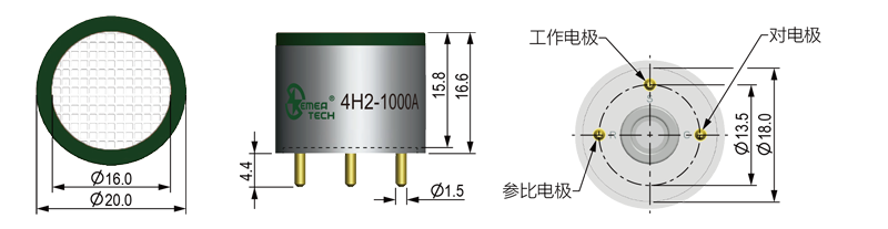 本产品用于测量氢气气体的浓度,能够消除一氧化碳气体干扰,可以通过管脚来替换标准的四系列氢气电化学传感器。
