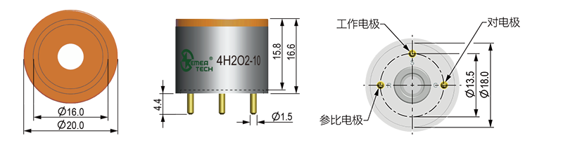 本产品为零偏压设计,用于测量过氧化氢气体的浓度,可以通过管脚来替换标准的四系列过氧化氢电化学传感器。
