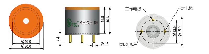 本产品为零偏压设计,用于测量过氧化氢气体的浓度,可以通过管脚来替换标准的四系列过氧化氢电化学传感器。